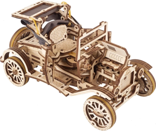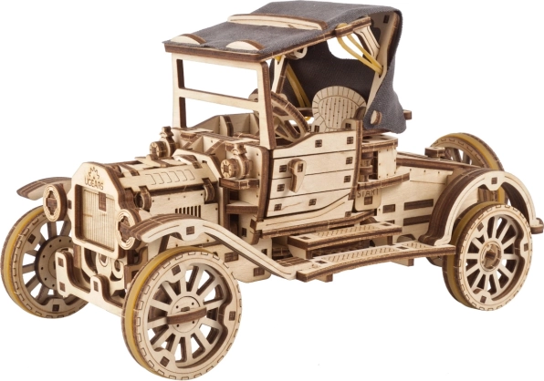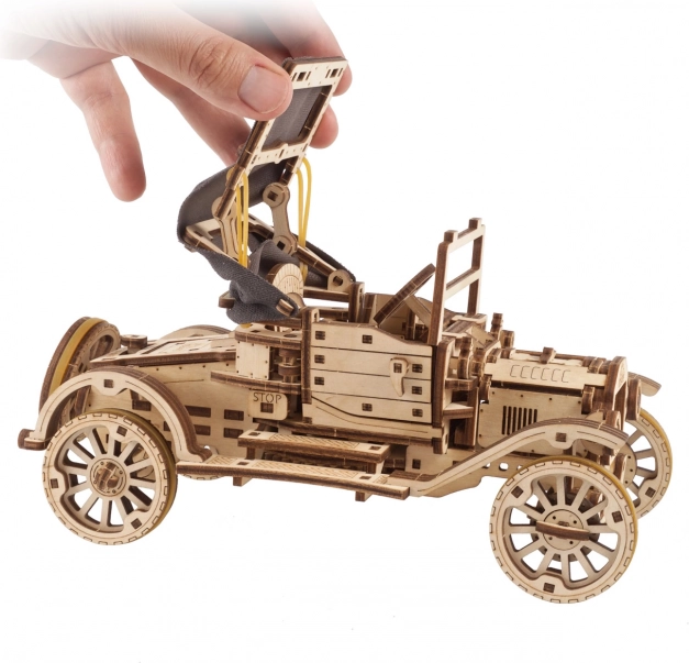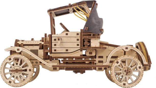 Μπείτε στον κόσμο των ιστορικών οχημάτων με αυτό το ξύλινο μοντέλο, εμπνευσμένο από το εμβληματικό Ford Model T. Το μοντέλο προσφέρει ανοιγόμενες πόρτες, αναδιπλούμενη υφασμάτινη οροφή και δυνατότητα αυτόνομης κίνησης, συμπεριλαμβανομένης της όπισθεν.