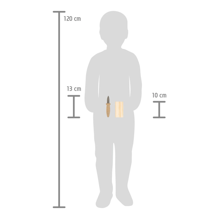 Αυτό το πρακτικό σετ για μικρούς κατασκηνωτές και δημιουργικούς μικροτεχνίτες περιλαμβάνει ό,τι χρειάζονται τα παιδιά για ασφαλή ξυλογλυπτική: ποιοτικό μαχαίρι με μονόπλευρα ακονισμένη λεπίδα και στρογγυλεμένη μύτη, αντιθλαστικά γάντια μεγέθους XS, ξύλινο τακάκι για δοκιμαστικές τομές και ανθεκτική υφασμάτινη θήκη με θηλιά ζώνης. Οι συμπαγείς διαστάσεις και η ξύλινη λαβή που ταιριάζει στο παιδικό χέρι υποστηρίζουν σωστές συνήθειες και σίγουρο κράτημα.