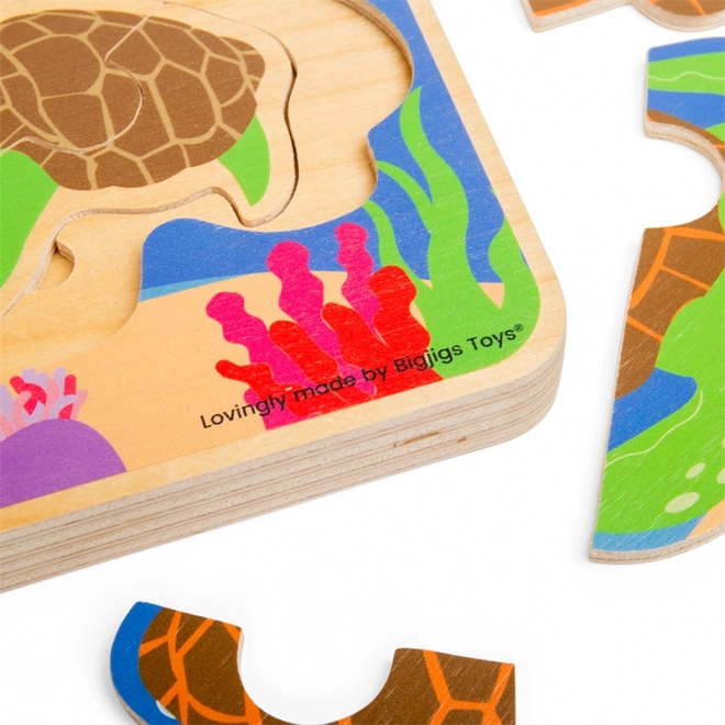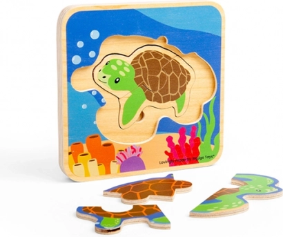 Αυτό το όμορφα εικονογραφημένο ξύλινο παζλ δείχνει στα παιδιά πώς μεγαλώνει η χελώνα – από το αυγό, στο νεοσσό, μέχρι την ενήλικη χελώνα. Τα μεμονωμένα κομμάτια τοποθετούνται κατά μέγεθος και τα παιδιά αποκαλύπτουν βήμα προς βήμα το επόμενο στάδιο ανάπτυξης.