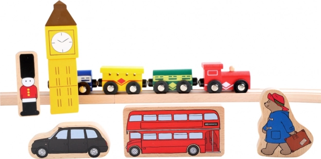 Το σετ περιλαμβάνει λεπτομερή ξύλινα στοιχεία του Big Ben, του κόκκινου τηλεφωνικού θαλάμου, του διώροφου λεωφορείου και φιγούρες – ιδανικά για θεματικές ιστορίες με τον PADDINGTON.