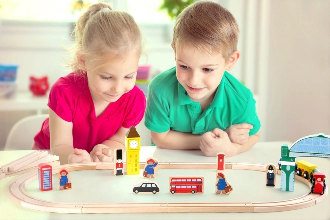 Ανακαλύψτε τη μαγεία της βρετανικής πρωτεύουσας με την πλήρη ξύλινη σιδηροδρομική διαδρομή, όπου ο PADDINGTON ξεκινά από τον δικό του σταθμό για μια περιπετειώδη διαδρομή. Το σετ περιλαμβάνει πλούσια αξεσουάρ και πολύχρωμες εκτυπώσεις γνωστών λονδρέζικων συμβόλων, που ανοίγουν στα παιδιά την πόρτα στη φαντασία και το θεματικό παιχνίδι.