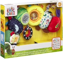 Ο αγαπημένος ήρωας από το παραμύθι Very Hungry Caterpillar ζωντανεύει ως πολύχρωμο υφασμάτινο λούτρινο γεμάτο δραστηριότητες, που διεγείρει τις αισθήσεις, υποστηρίζει την πρώιμη ανάπτυξη και εκπαιδεύει τη λεπτή κινητικότητα. Η κάμπια στριφογυρίζει, κάνει ήχο κουδουνίσματος και παίζει το νανούρισμα «Twinkle, Twinkle, Little Star». Χάρη στις διάφορες υφές, τον καθρέφτη, τις ετικέτες και τον αποσπώμενο κρίκο απασχολεί το μωρό στο σπίτι και στις βόλτες.