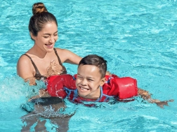 Η αφρώδης πλήρωση σε συνδυασμό με τα μανίκια και το θωρακικό πάνελ υποστηρίζει τη σταθερότητα στο νερό και δίνει στα παιδιά αυτοπεποίθηση κατά την εξάσκηση των δεξιοτήτων κολύμβησης.