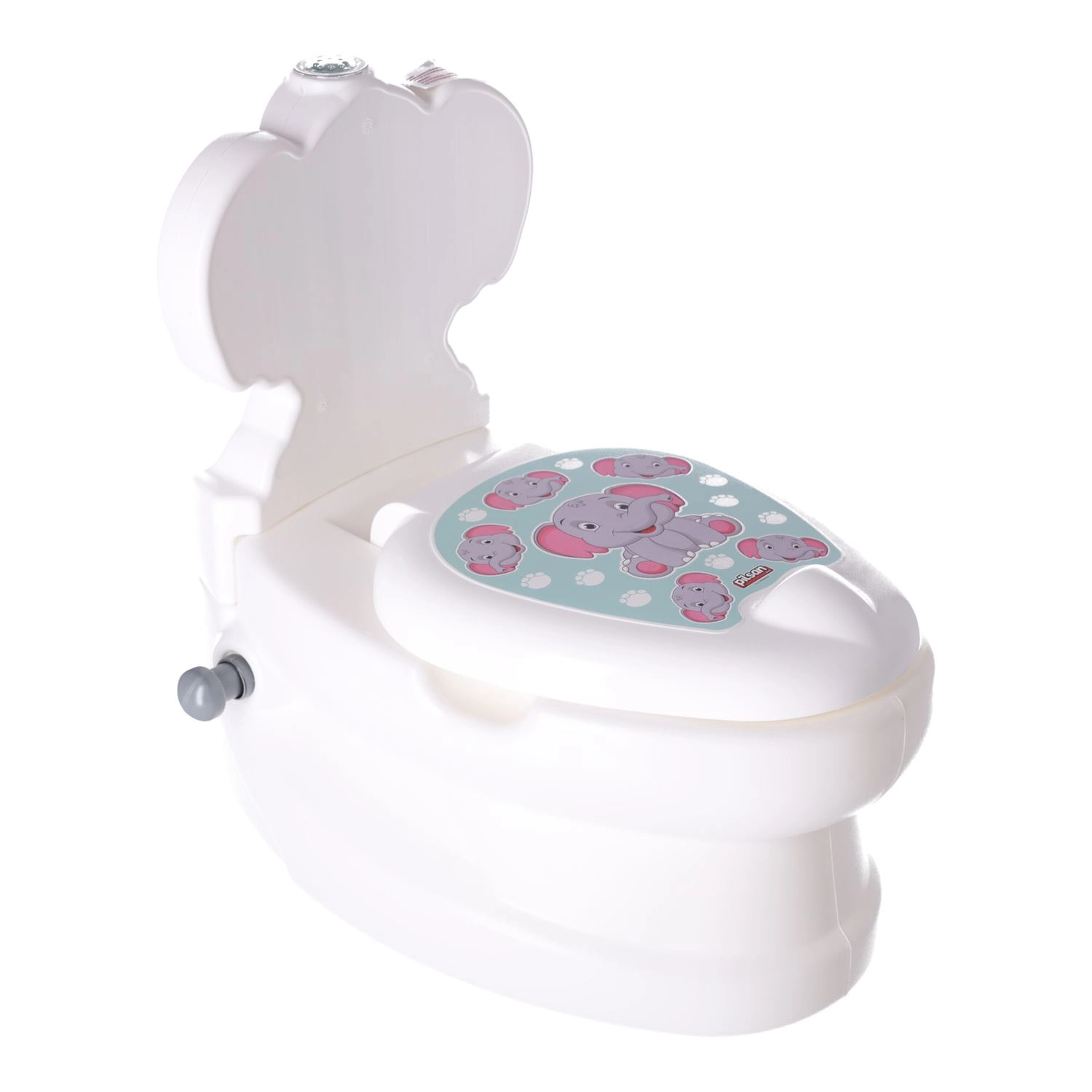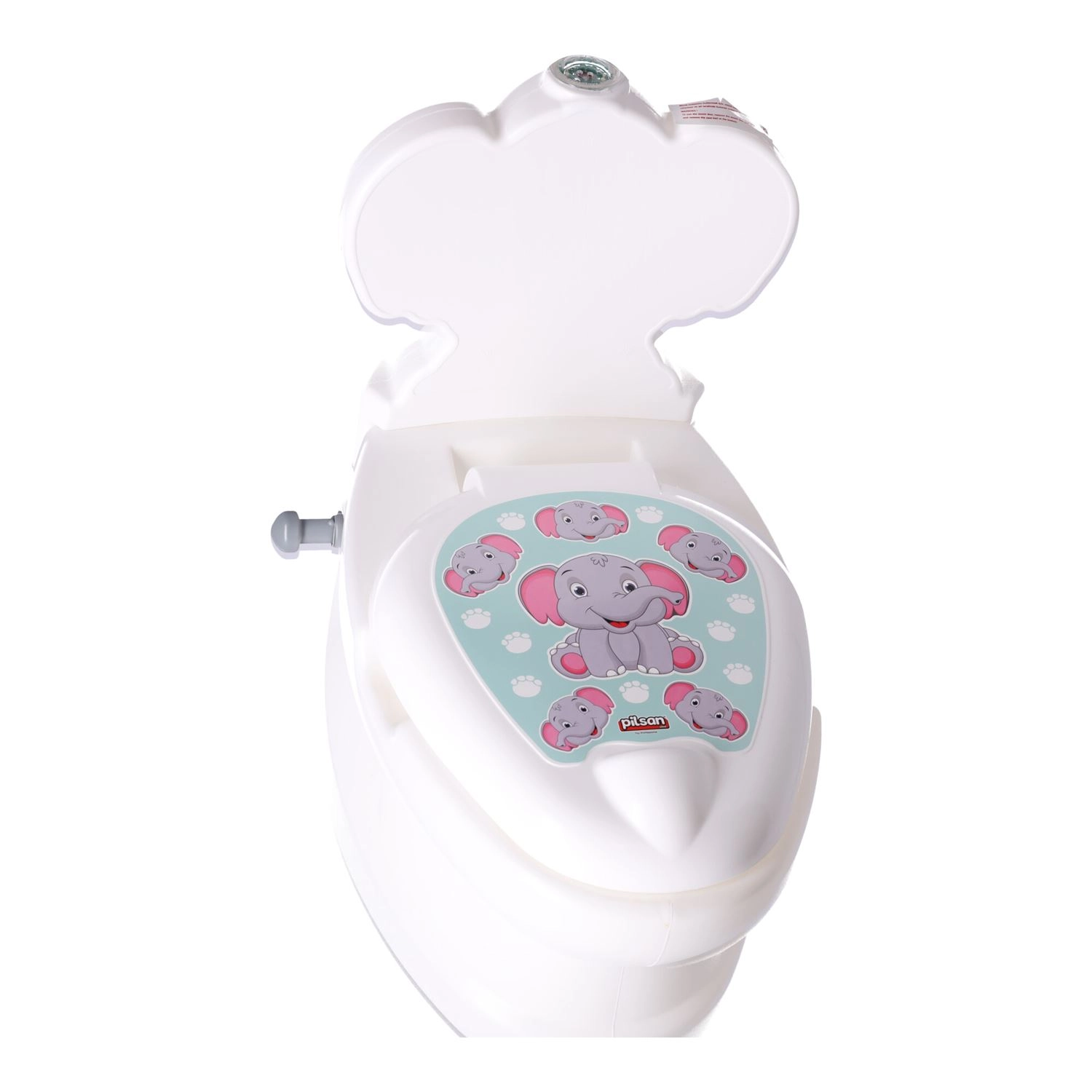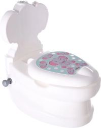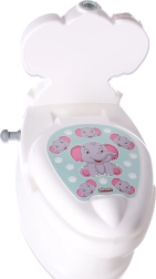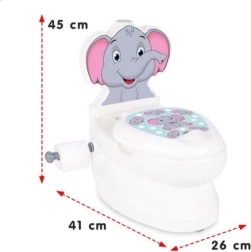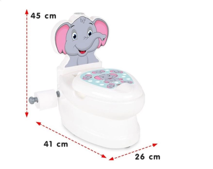 Γιογιό σε σχήμα πραγματικής τουαλέτας με μοτίβο ελέφαντα που μετατρέπει την εκμάθηση σε διασκέδαση. Χάρη στο εργονομικό κάθισμα και τη σταθερή κατασκευή, τα παιδιά αισθάνονται ασφαλή και άνετα, γεγονός που ενθαρρύνει τη συστηματική χρήση και την ταχύτερη μετάβαση από τις πάνες.
