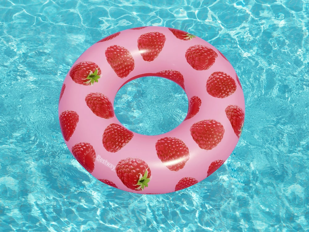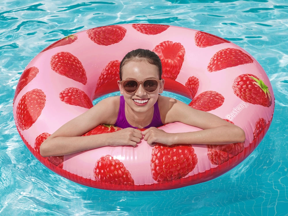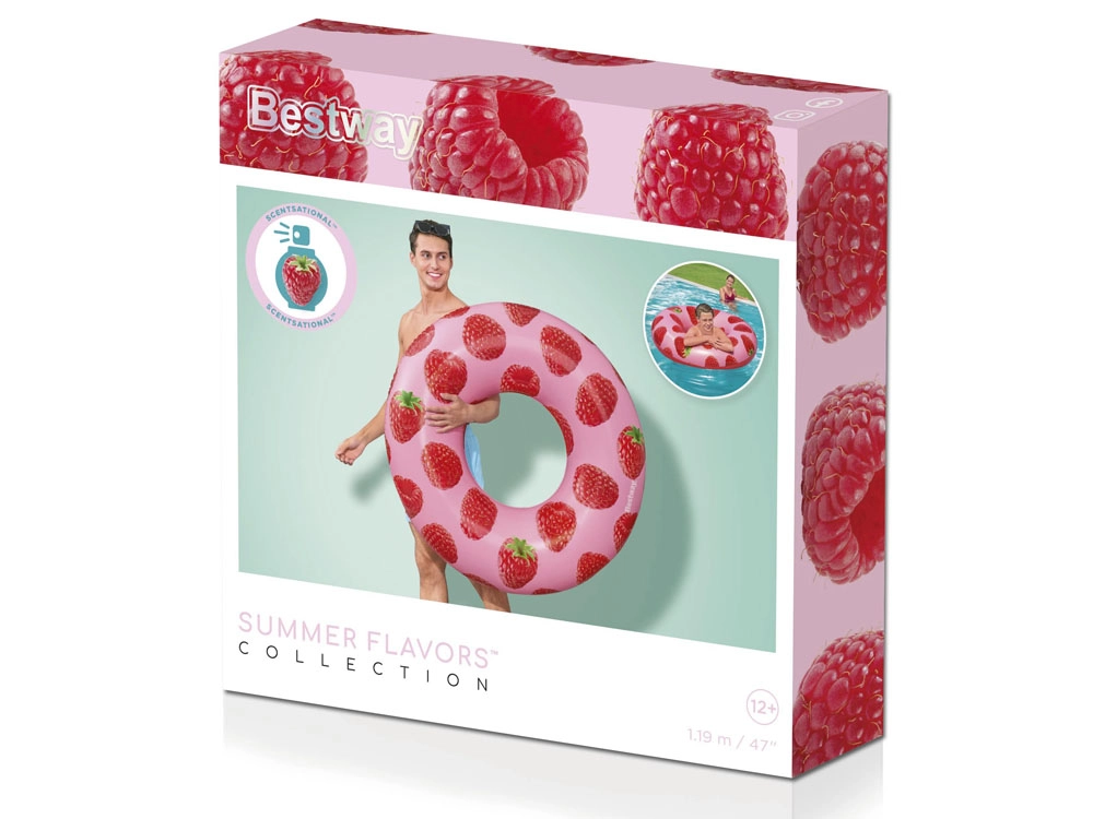 Το άρωμα ώριμων σμέουρων, ο παιχνιδιάρικος σχεδιασμός και η χαλαρή ξεκούραση στο νερό – αυτό το φουσκωτό σωσίβιο Bestway φέρνει σε κάθε μπάνιο μια πινελιά καλοκαιριού. Το διακριτικά αρωματισμένο υλικό ευχαριστεί τις αισθήσεις χωρίς να είναι υπερβολικά έντονο, ενώ το σχέδιο με σμέουρα τραβά την προσοχή με την πρώτη ματιά και μυρωδιά.