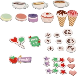 - Ρεαλιστική καφετέρια και πάγκος παγωτού – κουμπιά, πλήκτρα και αξεσουάρ για προετοιμασία «καφέ», επιδορπίων και μπαλών παγωτού.