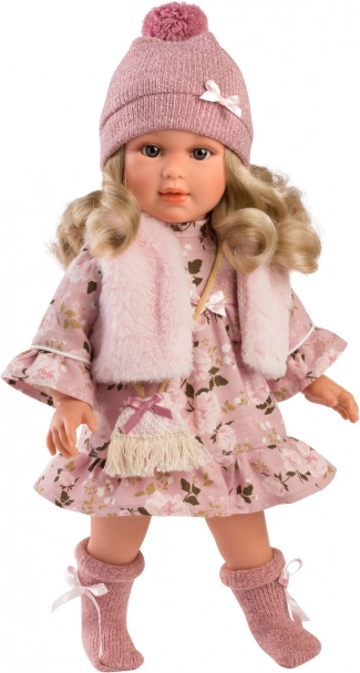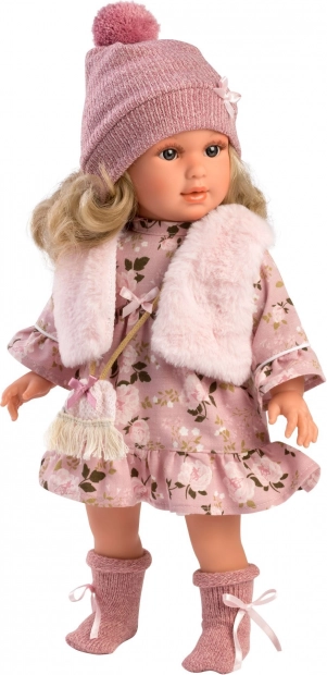 Στο σετ περιλαμβάνονται επίσης ένα στιλάτο καπέλο με φουντίτσα, κασκόλ και μια μικρή τσάντα, που ολοκληρώνουν το συνολικό outfit.