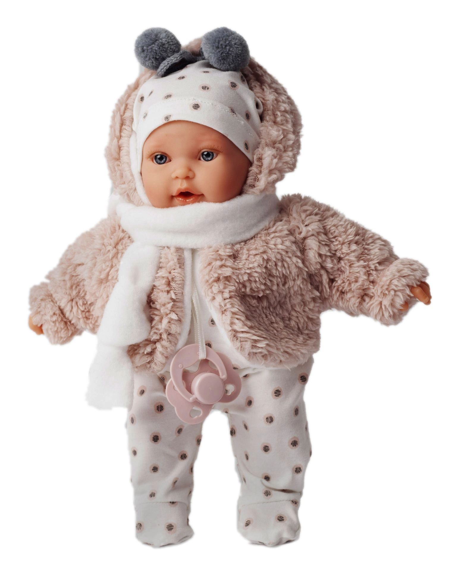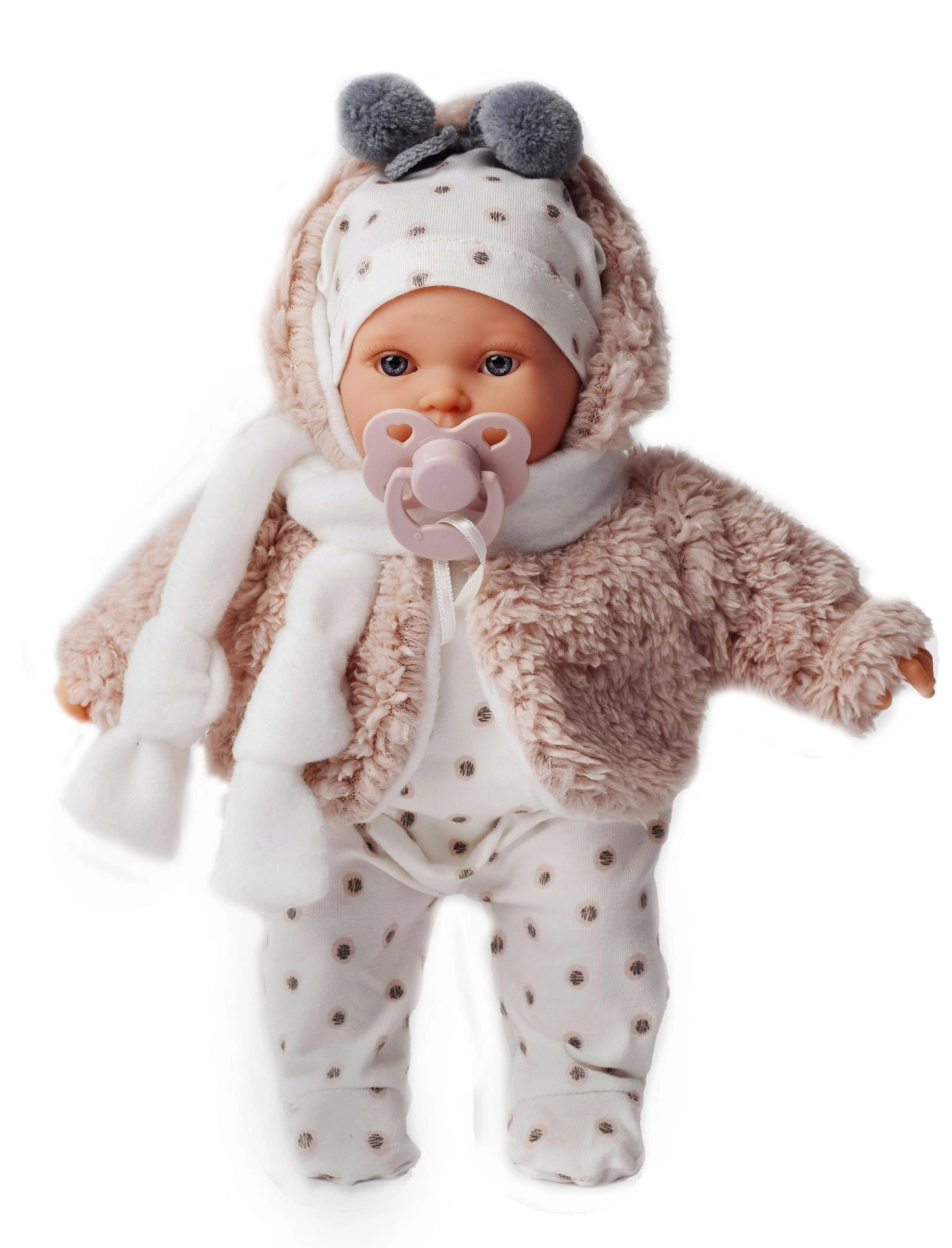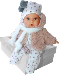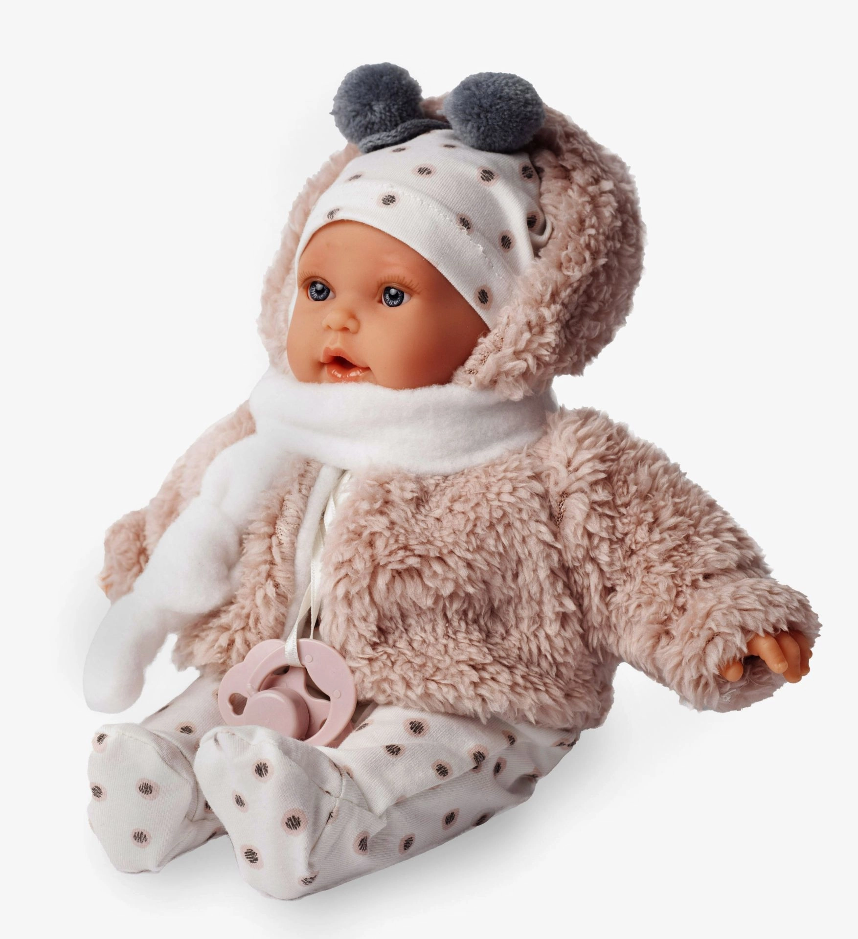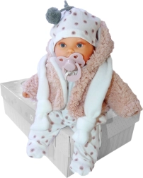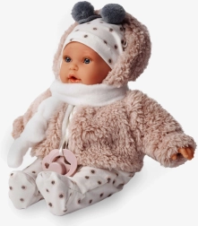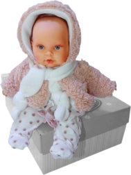 Ανακαλύψτε τη μαγεία μιας χειροποίητης ισπανικής κούκλας, που με τις λειτουργίες της ενθουσιάζει κάθε παιδί. Αυτή η κούκλα ανταποκρίνεται στη μαγνητική πιπίλα και παράγει ρεαλιστικούς ήχους κλάματος μωρού, που μπορούν να κατευναστούν. Μπορεί επίσης να λέει «μαμά» και «μπαμπά».