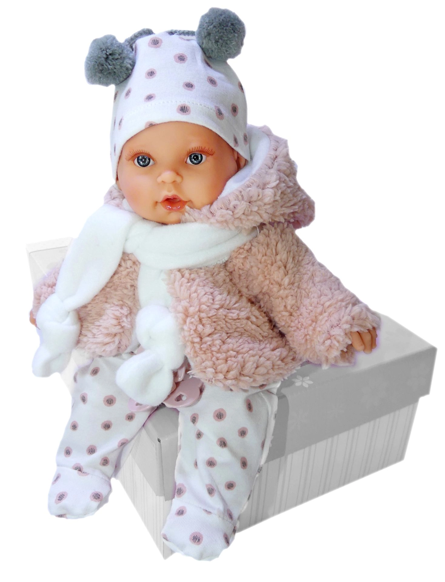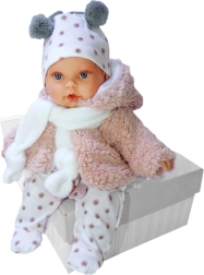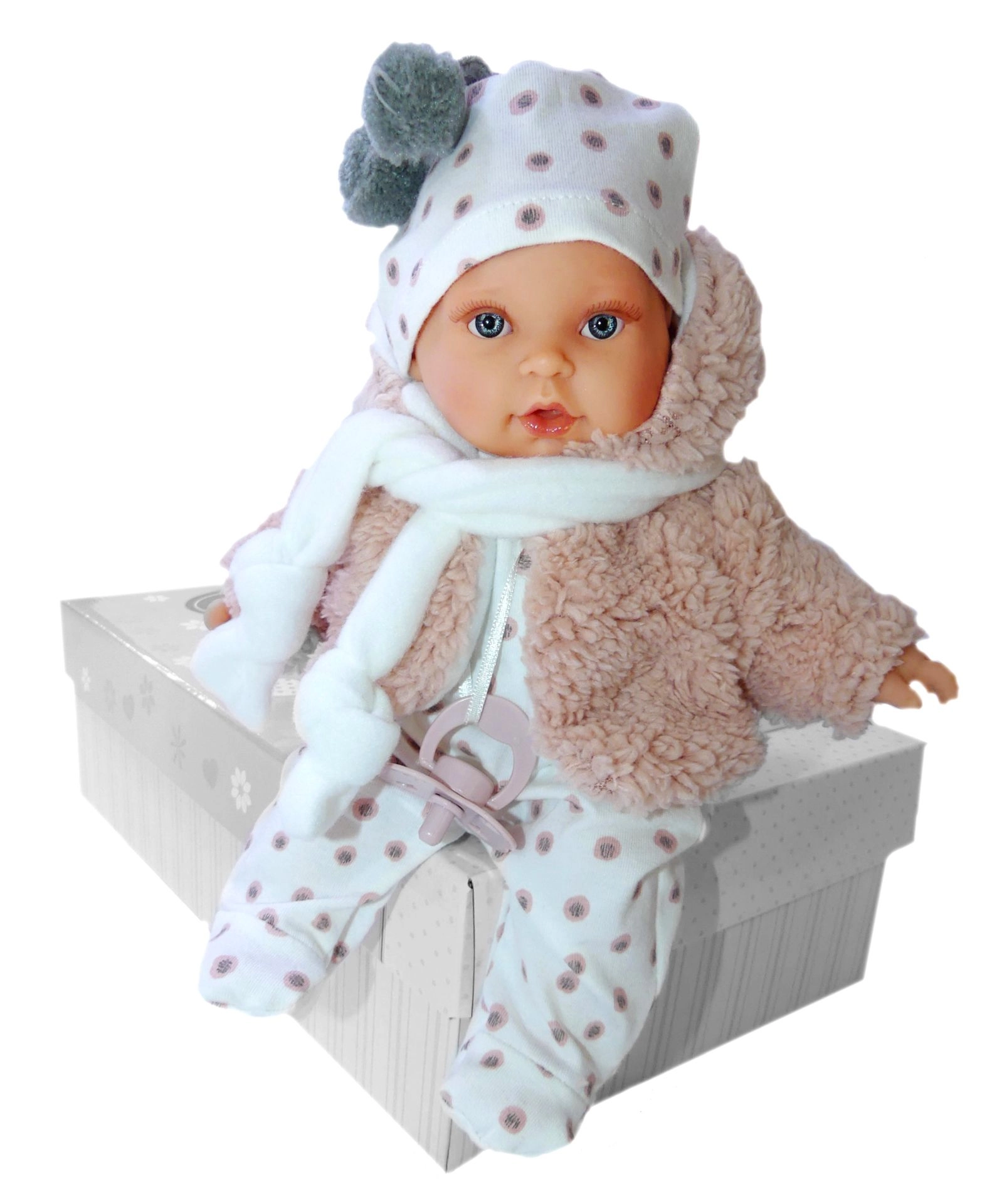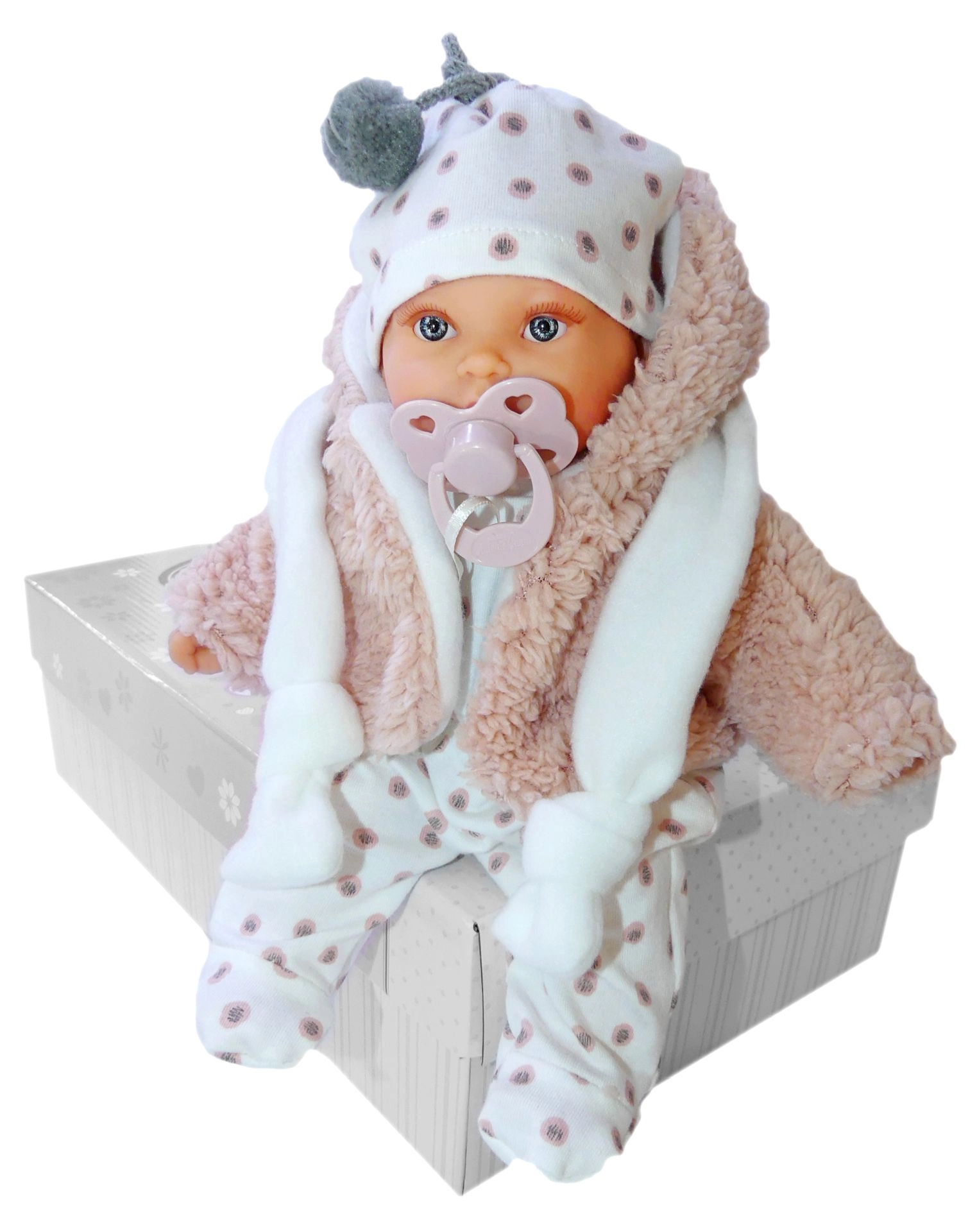 Ανακαλύψτε τη μαγεία μιας χειροποίητης ισπανικής κούκλας, που με τις λειτουργίες της ενθουσιάζει κάθε παιδί. Αυτή η κούκλα ανταποκρίνεται στη μαγνητική πιπίλα και παράγει ρεαλιστικούς ήχους κλάματος μωρού, που μπορούν να κατευναστούν. Μπορεί επίσης να λέει «μαμά» και «μπαμπά».