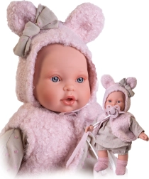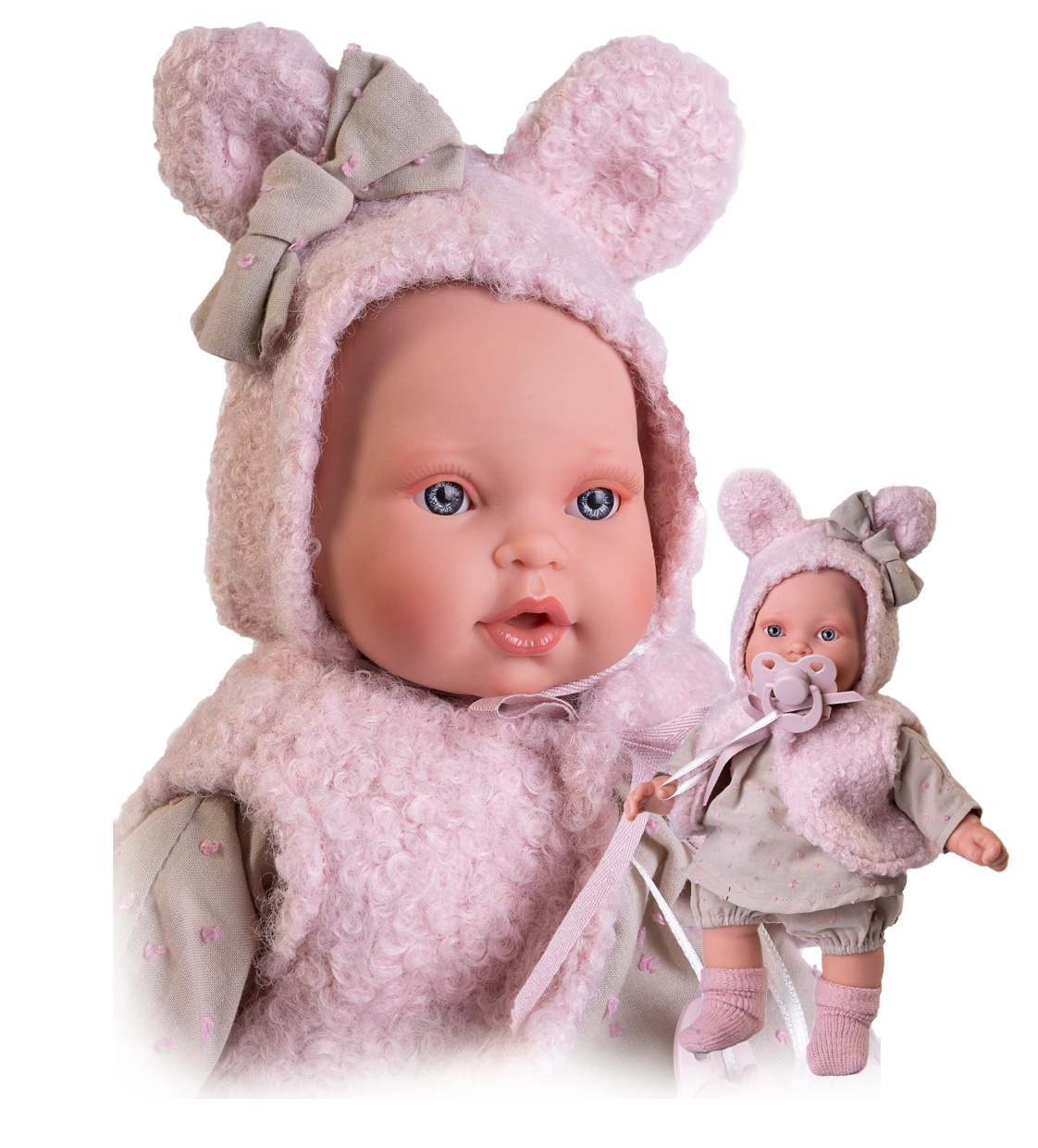 Ο συνδυασμός του πολύ μαλακού υφασμάτινου σώματος με τον ποιοτικό, απαλό βινύλιο στο κεφάλι και τα άκρα είναι ιδανικός για αγκαλιές και εύκολο χειρισμό από παιδικά χέρια. Ο κατασκευαστής ANTONIO JUAN δίνει έμφαση στη βιωσιμότητα – επιλεγμένα ρουχαλάκια είναι από οργανικό βαμβάκι χωρίς χημική επεξεργασία.