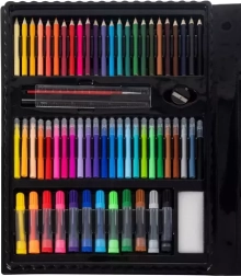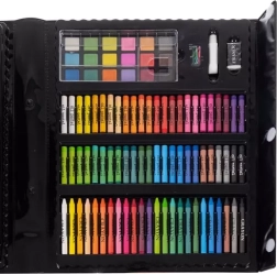 Το σετ περιλαμβάνει όχι μόνο μαρκαδόρους και ξυλομπογιές διαφόρων ειδών, αλλά και μεγάλο αριθμό λαδοπαστέλ, κατάλληλο χαρτόνι για την υποστήριξη της καλλιτεχνικής σας εξέλιξης και άλλα αξεσουάρ όπως στένσιλ, κλιπς και πινέλα. Έχει σχεδιαστεί ώστε να καλύπτει τις ανάγκες τόσο αρχάριων όσο και προχωρημένων καλλιτεχνών.