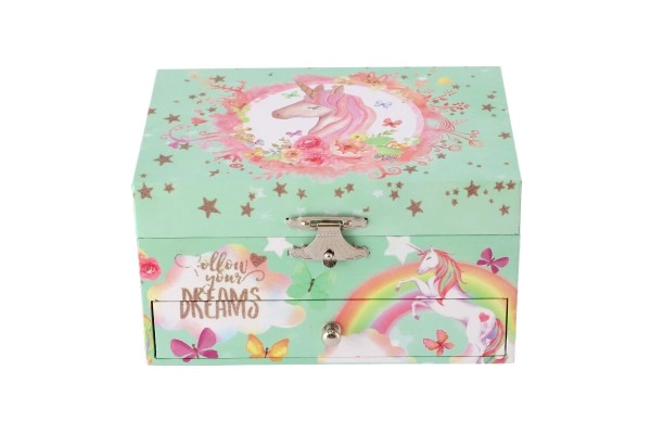Μουσικό κουτί-κοσμηματοθήκη με μονόκερο με κούρδισμα, μουσικό κουτί με καθρεφτάκι και συρτάρι 16 × 10 × 12 εκ.