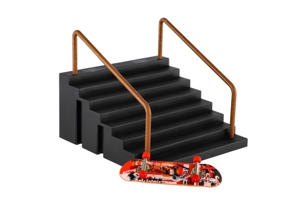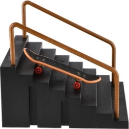 Αυτό το ρεαλιστικό σετ για fingerboarding φέρνει ένα συμπαγές “μίνι σκέιτπαρκ” απευθείας στο γραφείο σας. Τα ανθεκτικά σκαλοπάτια με κουπαστή και το ποιοτικό δαχτυλοσκέιτμπορντ επιτρέπουν προπόνηση σε slide, grind και ακροβατικά άλματα σε μικρό χώρο.